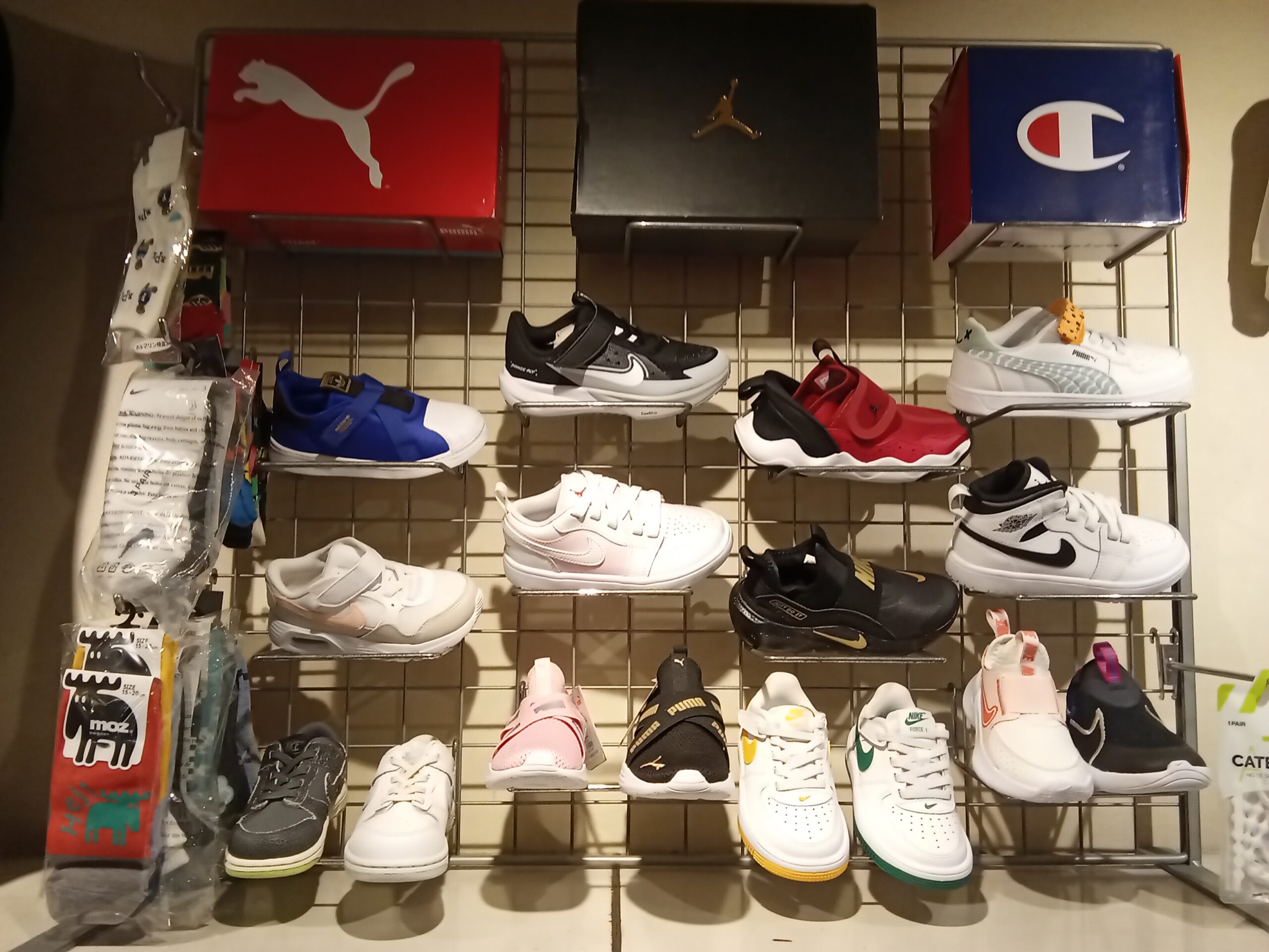 NIKE、PUMA、FILA、チャンピオンなどのスポーツウェア。マンシング、ルコック、ラウドマウスなどのゴルフウェア。ミラショーン、DAKS、EPOCA、アダバット、チュニックなどのホームウェア。またアンダーウェア、ソックス、シューズなど様々な商品を大人から子供までそろえております。3L,4Lのキングサイズも充実しております。